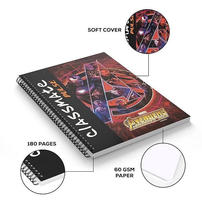Classmate Pulse Notebook – 24 X 18, 200 Pages Unruled, Wiro Binding, Pack of 4