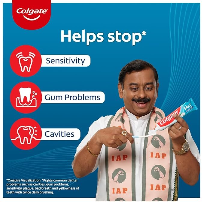 PREVENTS DENTAL PROBLEMS: Colgate Active Salt toothpaste with its unique formula strengthens germ fighting power and prevent cavities, plaque build-up, tartar formation, gum problems, yellowness of teeth , bad breath etc. ?