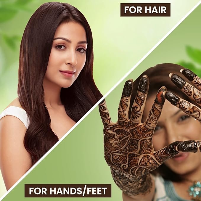 FOR HANDS/ FEET: Mix Godrej Nupur Henna with sufficient water and let it soak for 1 hour. Use the mixture to draw designs and let it dry for 2-3 hours. Wipe off the mixture or use water to remove