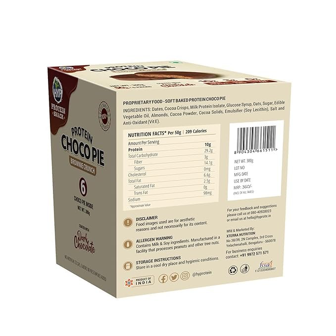 Snack Absolutely Guilt-Free: HYP Dark Chocolate coated pies are completely guilt-free snacks with high protein and dietary fiber content. Nutritionally charged with a fine source of milk protein, these baked snacks do not contain any preservatives or artificial ingredients.