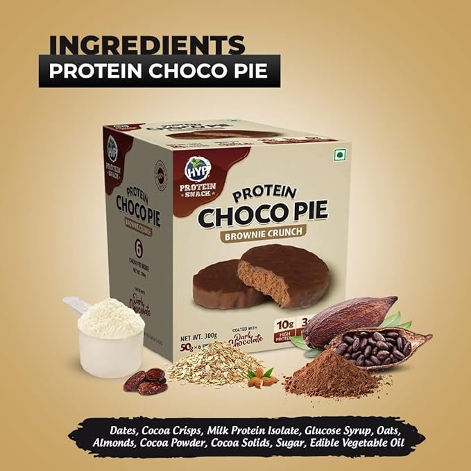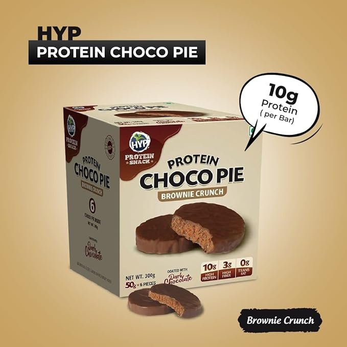 HYP- Protein Choco Pie, Brownie Crunch (6×50 g) | 10 g Protein per Pie | High Protein, High Protein Snacks