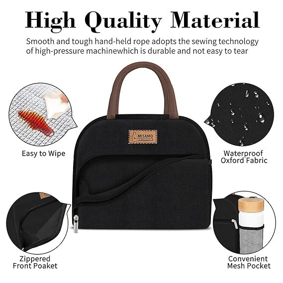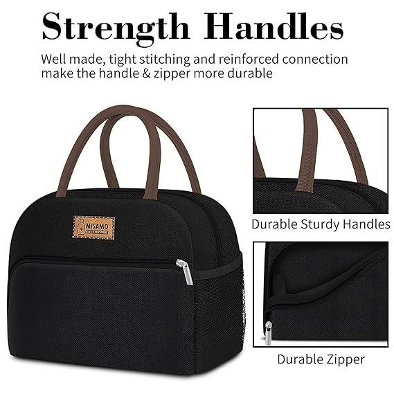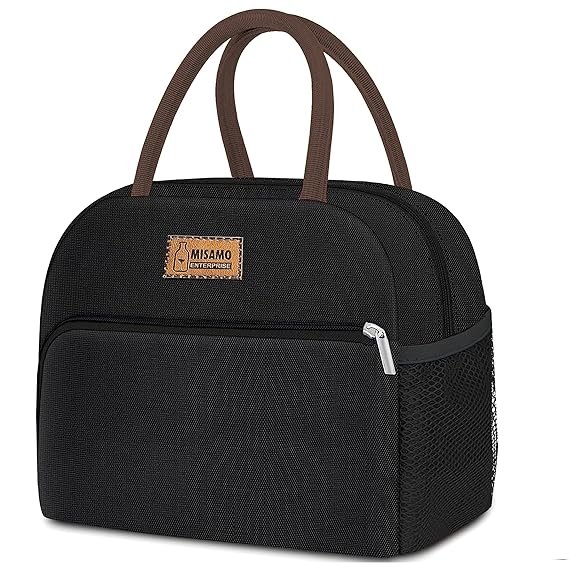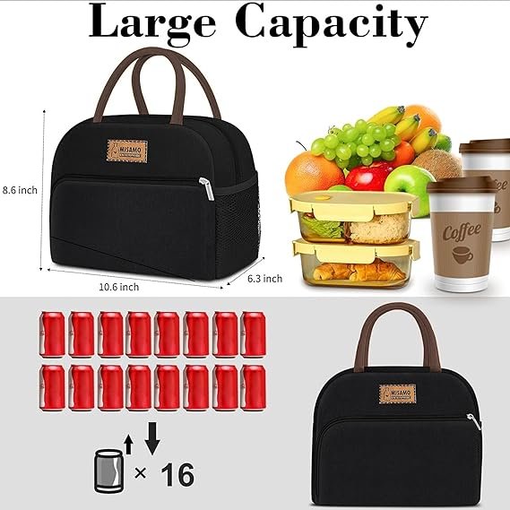 - 【PERFECT SIZE & LIGHT WEIGHT】: Lunch bag women size is 10.8 *6.3 *8.85 inches, 0.25 gms, with a large capacity of about 10L≈16 cans of 330 ml drinks. Lunch bags for women is spacious enough to fit your lunch box, snacks, and drinks. Yet the small lunch bag for women is compact enough to fit in your fridge or storage cabinet. MISAMO ENTERPRISE black lunch bag is super light weight, easy to carry and perfect standard size . This genuine feedback comes from our customers.
