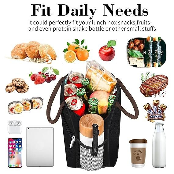 - 【MULTIFUNCTIONAL LUNCH BAG】: Lunch box has a front zipped pocket for storing your cutlery, snacks, napkins, keys, change, cards, mobile phones, bus cards, tissues, chewing gum, or other small items. Lunchbox has a side mesh pocket for drinks, bottles, chocolate milk container, or even an umbrella, freeing up your hands. So you can use it as a lunch cooler bag, shopping bag, picnic bag, and make-up bag for adults,teachers, women, men, nurses, ladies, etc.