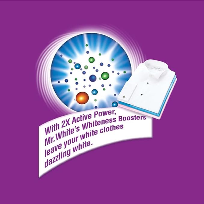 - Whiteness boosters – Mr White Laundry Detergent Powder brightens up your white clothes with it’s ULTIMATE WHITENESS formula.