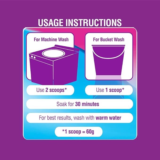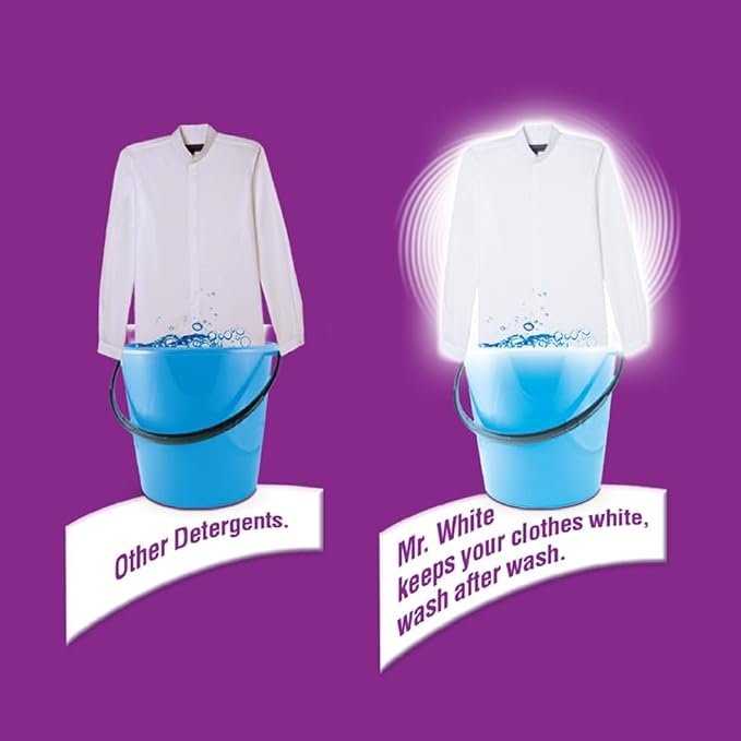 Presenting Mr White Detergent Powder – a deteregent powder that comes with Whiteness boosters which brings ULTIMATE WHITENESS to your White clothes and helps keep it’s new look intact. It has NO BLEACH formula that keeps even your coloured clothes bright and safe. It’s Superior formulation removes tough stains & leaves long-lasting fragrance to keep your clothes fresh. This granulated detergent powder is a perfect solution for the greying of white clothes. Add Mr White Detergent Powder to your laundry basket, this works equally well for Bucket Wash and Machine Wash (on Top load Machines only) to give you bright & long-lasting results.