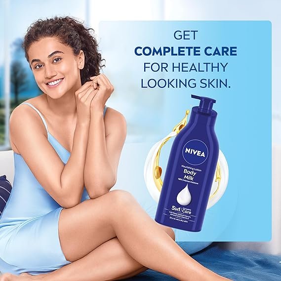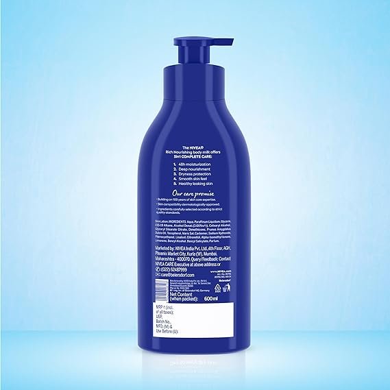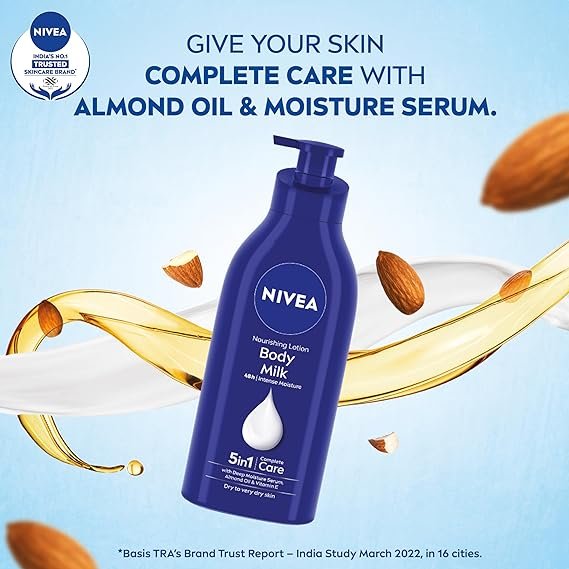 - Nivea body lotion, nourishing body milk, for very dry skin.