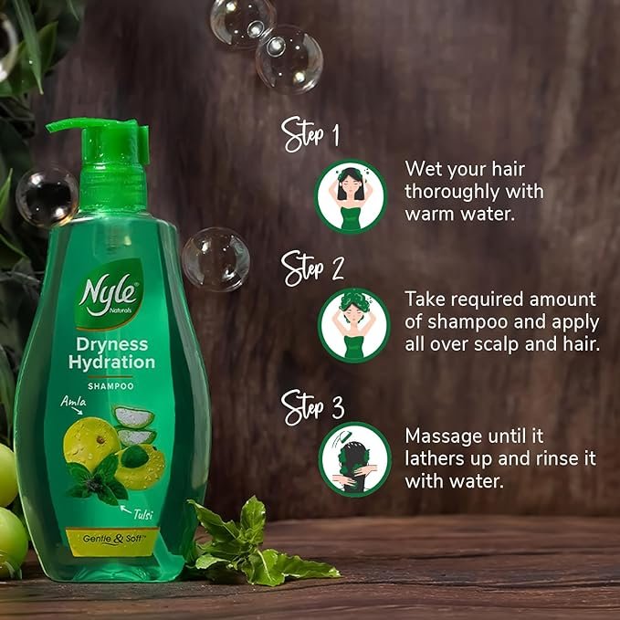 - Nyle Naturals Dryness Hydration shampo is a gentle and soft daily shampoo curated with the goodness of natural ingredients. It is PH Balanced & Paraben Free shampoo suitable for all hair types.
