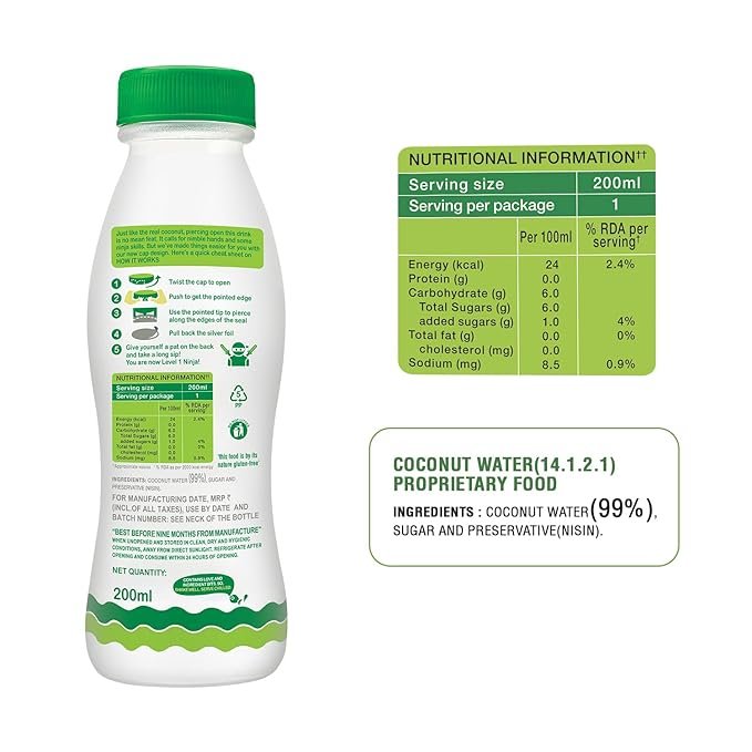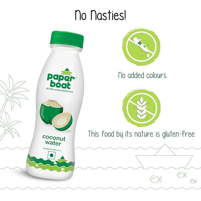 • Paper Boat Coconut Water is free from all the Na-real stuff. No added colours. No GMOs. By its nature gluten-free