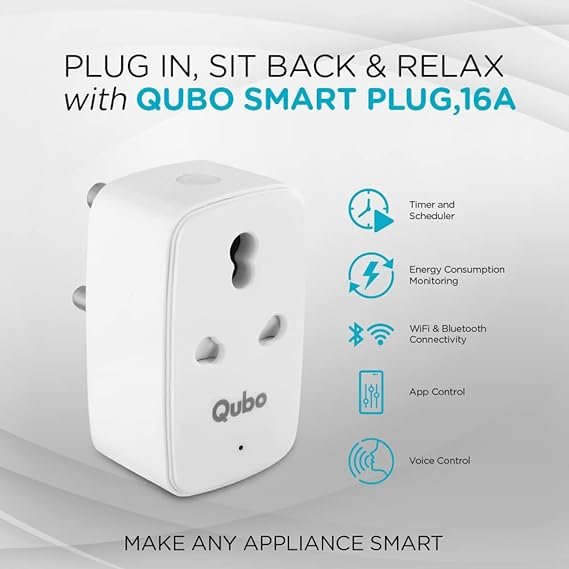 QUBO 16A Wifi + BT Smart Plug from Hero Group, Energy Monitoring, Suitable for large appliances