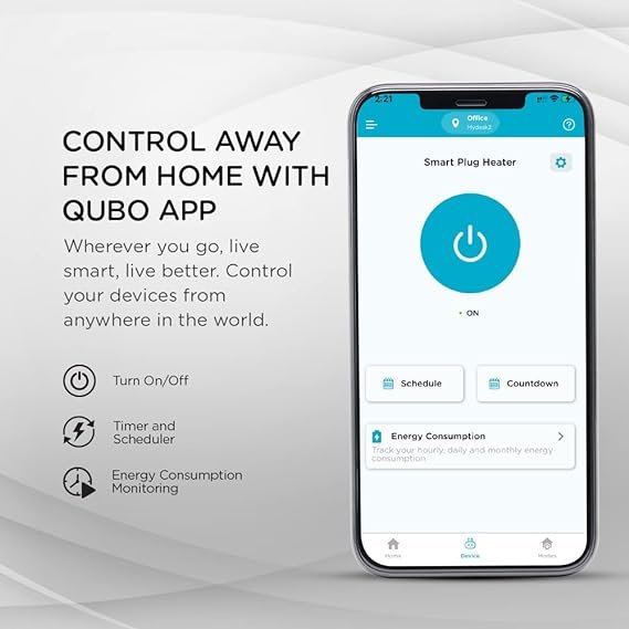 • App Control – Wherever you go, live smart, live better. Control your devices from anywhere in the world. Turn on/turn off, set timers and schedules or monitor energy consumption too. Connect and control multiple plugs and other smart home devices from the Qubo Mobile App.