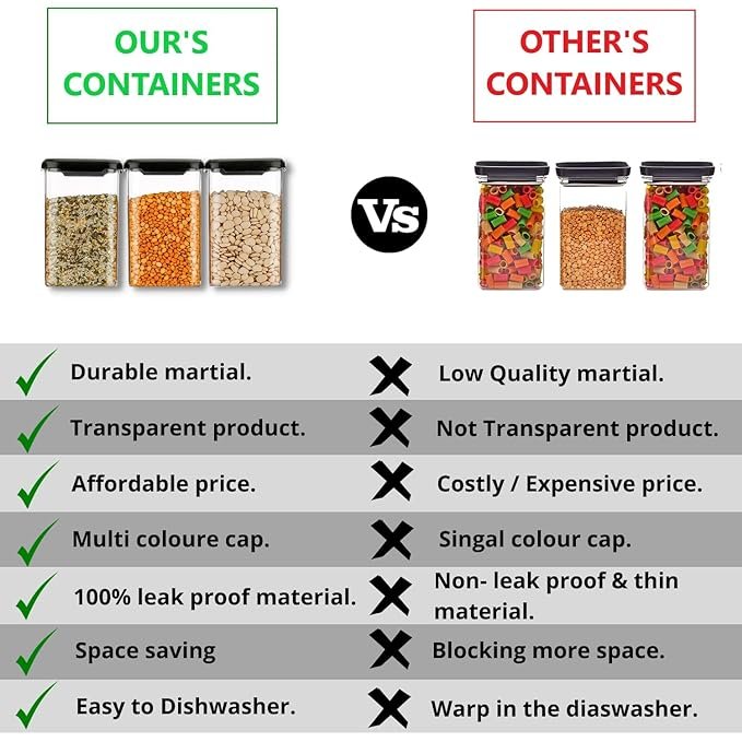 Air tight container box for storage kitchen are easy to wash and can be reused again and again . It does not discolor, retain smells, or leach chemicals into food. Our glass bottles are transparent, so you’ll never have to play the guessing game with your airtight container ’s contents. perfect grocery containers for kitchen .