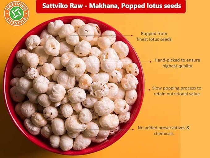 - Slow Popping process- Seeds of Makhana are popped at right temperature and in proper time to retain their nutritional value
