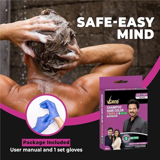 - VCare Shampoo Hair Color is completely safe from hazardous chemicals like PPD, Ammonia and Paraben.